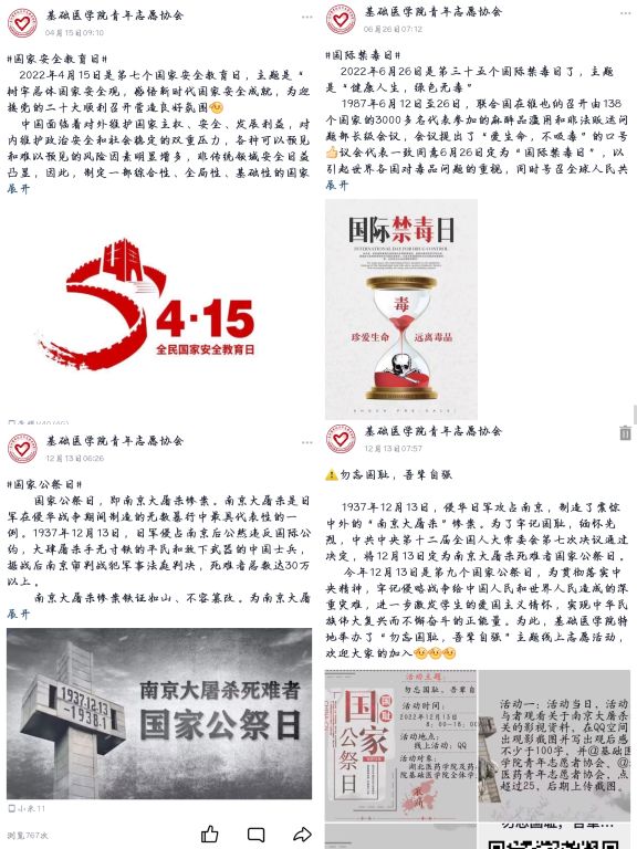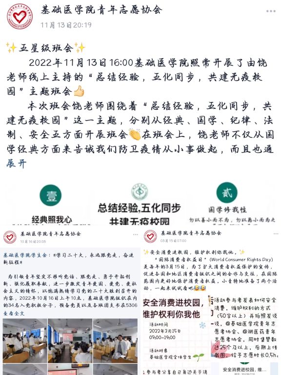 3.弘扬志愿服务精神,持续推进社会实践。作为新时代青年,对于大学生实践能力应该提出更高的要求。我院分团委将继续开展大学生社会实践活动,为广大同学提供社会实践平台,尽量做到社会实践主题内容上推陈出新,让广大同学积极参与社会实践活动,在大学期间,有所收获,有所提升。同时也希望基础学子能以自身行动践行“奉献,友爱,互助,进步”的志愿者精神,体会到志愿服务的意义在于传递爱心,传播文明,知晓志愿服务有助于建立和谐社会,促进社会进步。
