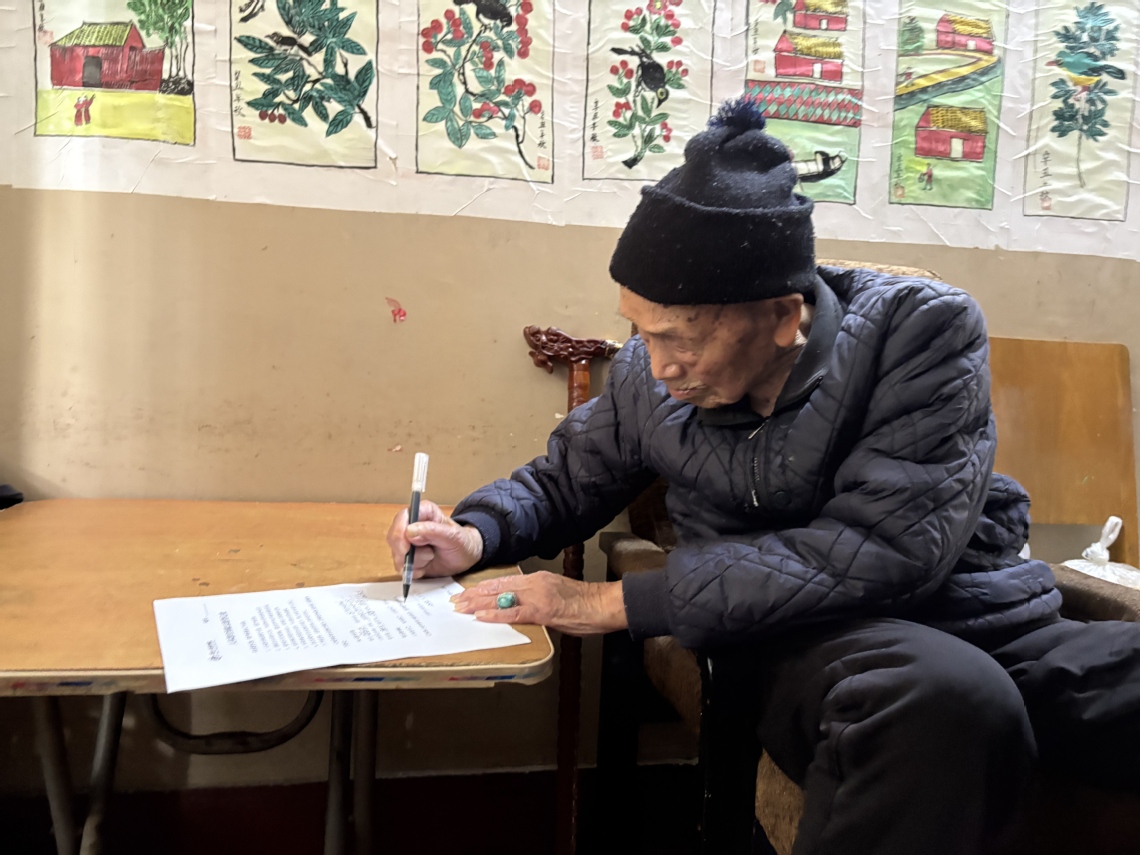 余敬标老人出生于1923年,是一位怀有深厚家国情怀的老党员,一生淡泊名利、质朴纯粹,始终秉持为国家、社会奉献的信念。得知遗体捐献可助力医学人才培养与科研进步后,他主动提出捐献意愿。贺细菊向老人详细说明了遗体捐献的流程、意义及后续教学科研用途,老人认真聆听后,亲手签署志愿登记表并按下手印,以庄重方式完成了生命托付。